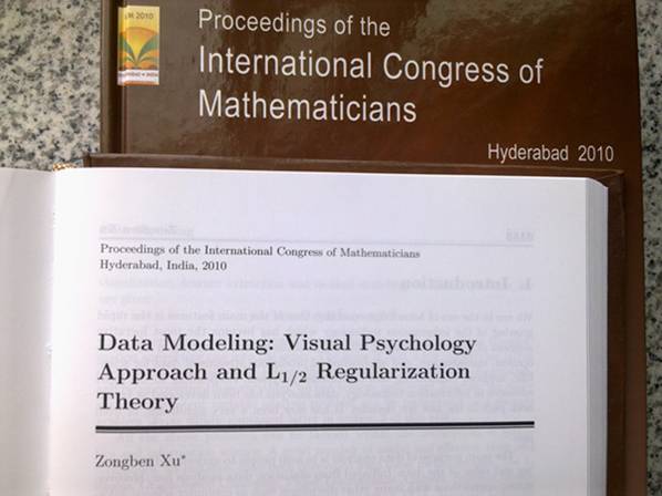 The 26th International Congress of Mathematicians (ICM 2010) was held from August 19-27, 2010 in Hyderabad, India. Upon the invitation of the congress, Prof. Zongben Xu delivered a 45-minute talk titled Data modeling: Visual psychology approach and L1/2 regularization theory.