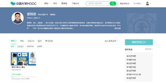 | 2019.8-2020.4 | 西安交通大学线上“名课程”—智能仪器设计基础 | 院校级 |