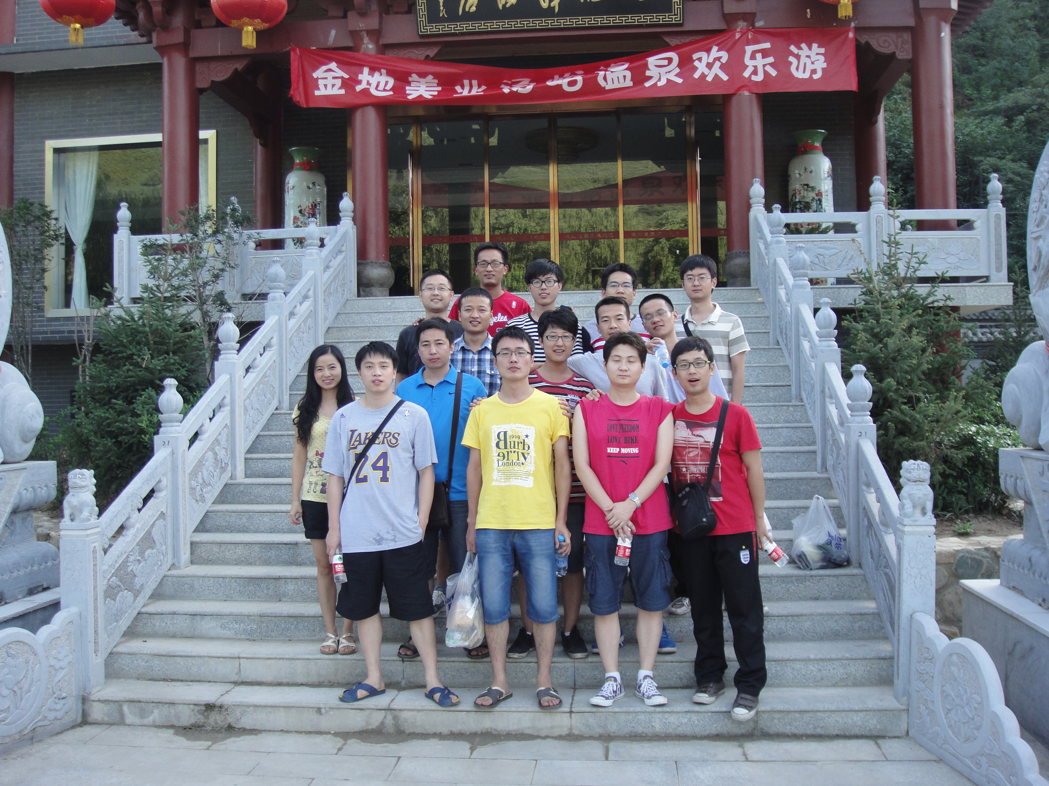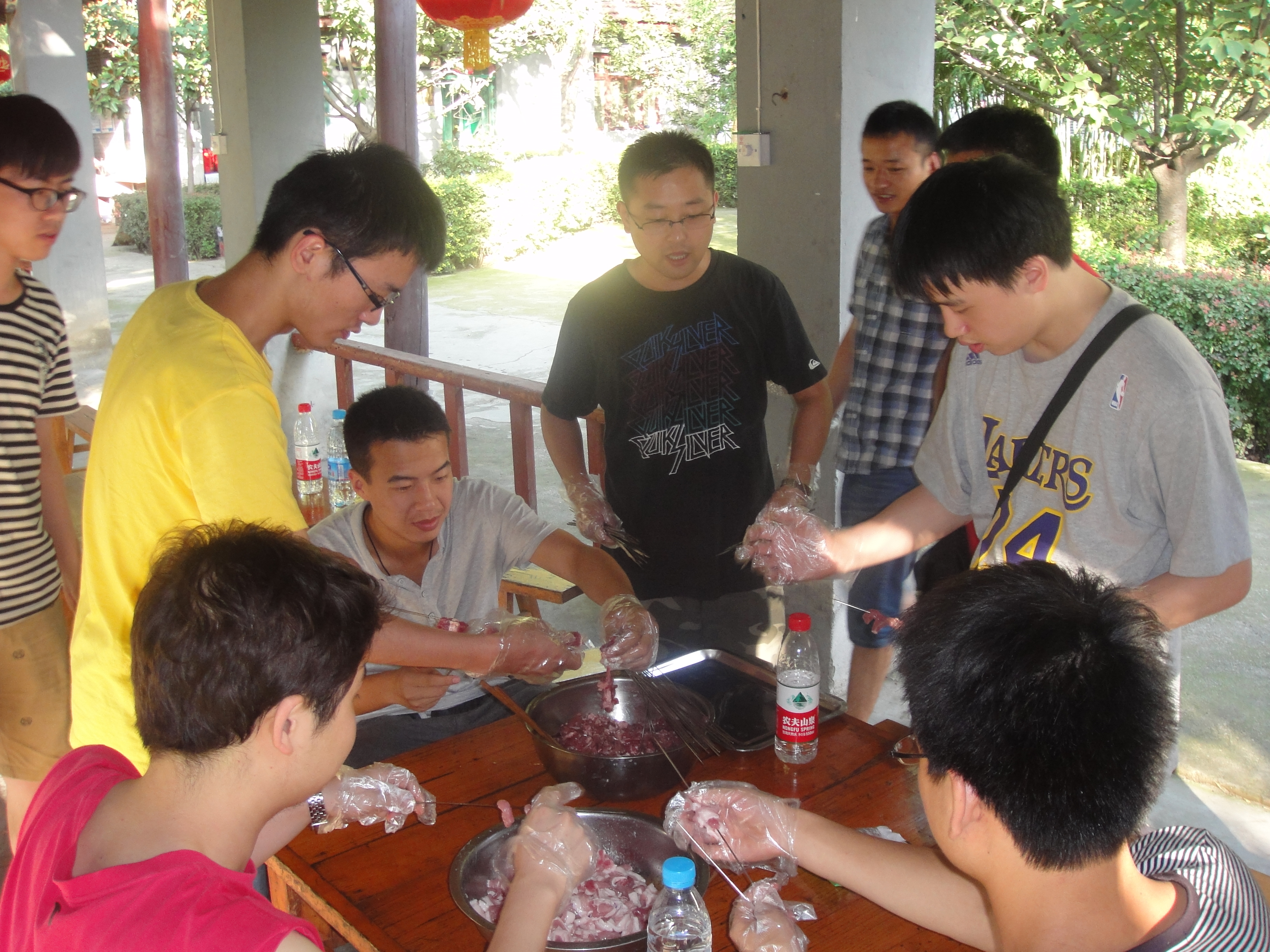 7月29日,课题组同学就早早的去沃尔玛采购了烧烤原料、调料、用具以及一些零食和饮料。7月30号上午8:20,教研室出游人员于交大南门准时出发,上午10点,课题组同学到达青山环抱,谷幽林秀,湖光倒映,草深鱼跃的蓝田汤峪湖森林度假山庄。简单休整后,教研室出游人员来到了附近极具特色的农家乐。在农家乐后院,山溪水畔、或躺在吊床、感受自然,或五六个人围在一起打打三国杀,大家玩的不亦乐乎。晚上,同学们又自食其力,生起炉火,进行自助烧烤。烧烤过后,同学们来到了素有“桃花三月汤泉水,春风醉人不知归”的美誉的汤峪温泉。汤峪温泉含有几十种对人体有益的矿物质,长期沐浴能促进新陈代谢增强生理机能,健身美容,并对皮肤病和关节炎等有一定疗效。对神经性骨痛、消化道、风湿等多种疾病具有特殊疗效。同时还能起到舒筋活络、强身健体、润肤养颜、安神定神、抗衰老等保健作用。第二日,早早洗漱完毕,部分同学便开始进山,天公作美,没有炙热的阳光,山风轻抚,竟还有些丝丝凉意,公园内,森林茂密,山环水绕、秀丽异常。考虑到安全因素,大家原路返回,尽管如此,各位同学仍觉不虚此行。