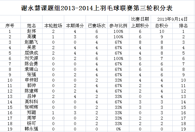 课题组第四届羽毛球联赛第3轮结果公告