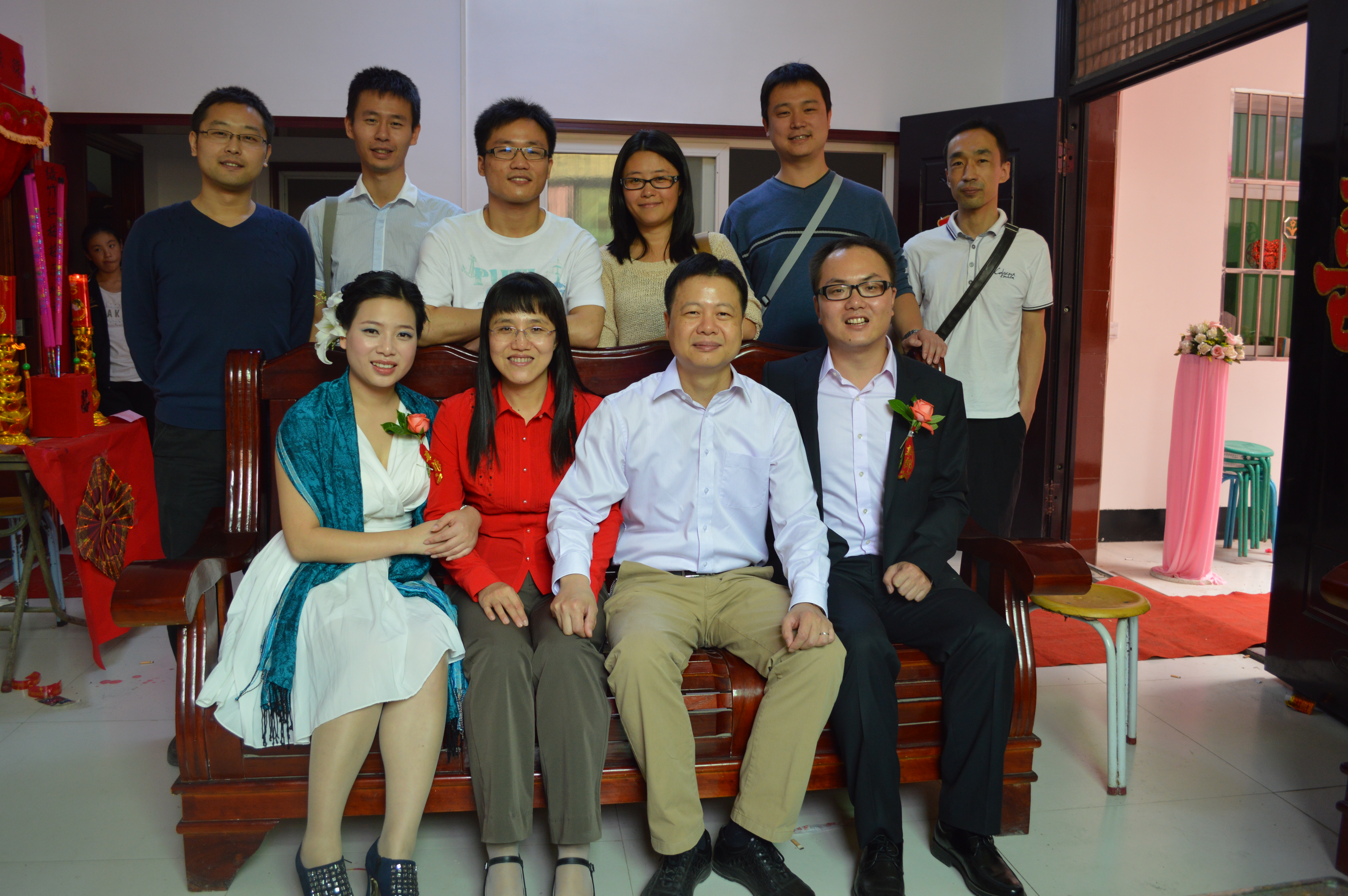 近日,课题组2009届硕士毕业生何林与徐霞,有情人终成眷属,在西安喜结良缘,谢永慧老师和张荻老师,课题组博士研究生吴君、屈焕成同学以及从课题组毕业的樊涛同学及其夫人冯怡、韩永强同学、李平同学作为代表前往祝贺二位新人新婚大喜,带去老师和同窗的祝福。