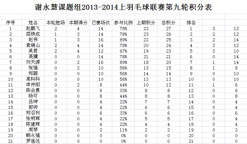 - 文章标题:课题组第四届羽毛球联赛第9轮结果公告