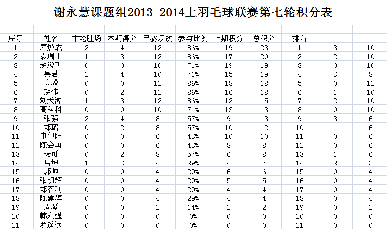 课题组第四届羽毛球联赛第7轮结果公告