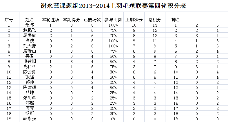 课题组第四届羽毛球联赛第4轮结果公告