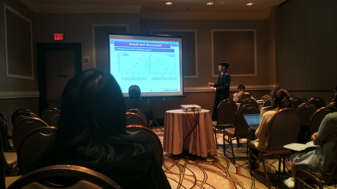 由课题组张荻教授指导、杨可博士完成的文章“Laminar flow and heat transfer of two thermal expansion fluids in protruded and pin-finned channels”被该会议接收,杨可博士应邀前往拉斯维加斯参加会议并做相关主题汇报,会上他详细介绍了两种不同的热膨胀流体在球凸结构和针肋结构中的换热特性,对比了两种结构在换热方面的特点,并在汇报完毕后解答了相关学者提出的学术问题。杨可博士深入浅出的分析、娓娓而谈的叙述赢得了与会者的阵阵掌声。