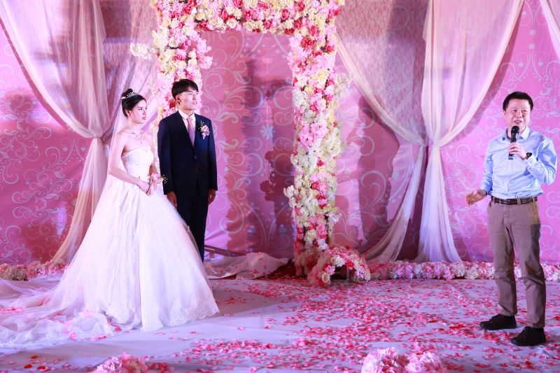 伴随着轻快的音乐,一对新人步履轻盈地走上会场中央,在众人的欢笑与祝福声中踏上婚姻的殿堂,完成从相恋相依到相爱相守的华丽过度。谢永慧教授代表研究团队在王宇璐的婚礼上进行了热情洋溢的致辞,他充分肯定了王宇璐在教研室的团队工作中的优异表现,并用幽默诙谐的语言为王宇璐和郭凯伦的新婚送上热烈的祝福。