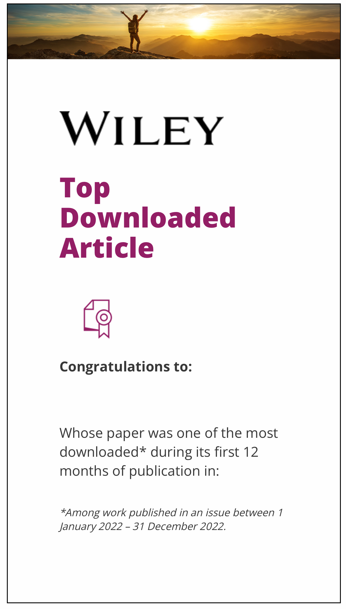 Wiley | Top Downloaded Author(Wiley年度高下载量作者奖)
