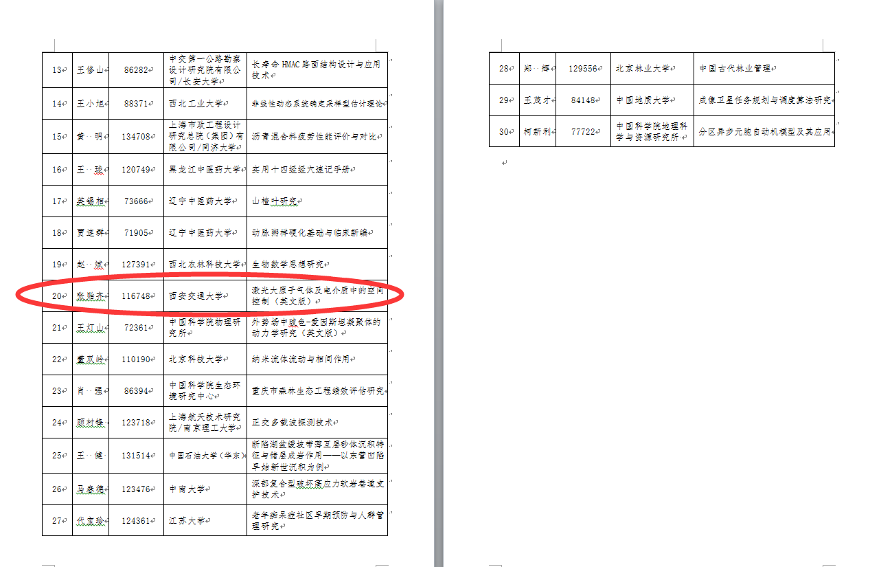 各有关博士后设站单位:2015年度《博士后文库》书稿评审和论证工作已于6月结束。经《博士后文库》编委会初审、专家评议、科学出版社选题论证,共确定资助出版专著30部。现对获资助人员名单予以公布。附件:2015年度博士后优秀学术专著出版资助获资助人员名单2016年7月7日中国博士后科学基金会