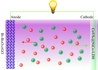 博士生史忙忙,在Dalton Transactions发表了题为“Uniform Bi-Bi2O3 nanoparticles/reduced graphene oxide composites for high-performance aqueous alkaline battery”的文章,该文章主要针对于兼具高能量密度和功率密度优点的水系碱性电池的正负极材料结构设计。首先,将具有大量异质界面的金属铋-氧化铋纳米粒子(Bi-Bi2O3)成功地锚定,并均匀分布在还原氧化石墨烯(rGO)的表面上。作为碱性电池的负极材料时,它在1 A g-1的电流密度下,表现出288.0 mAh g-1 (1036.9 F g-1)的高比容量和良好的倍率性能(在20 A g-1下的容量保持率为74.7%)。此外,为了与Bi-Bi2O3/rGO-20阳极更好地匹配,通过简便的多步水热法及随后的电化学沉积工艺,成功地构建了Ni-Co层状双金属氢氧化物(NiCo-LDH)修饰的CoVSx薄片。组装后的 CoVSx@NiCo-LDH//Bi-Bi2O3/rGO-20 非对称碱性电池在789.6 W/kg的功率密度下提供106.1 Wh/kg的能量密度。此外,所合成的铋基电极应用于水系锌基碱性电池,仍然展现出优异的电化学性能,为下一代储能设备的电极材料结构设计提供了灵感。