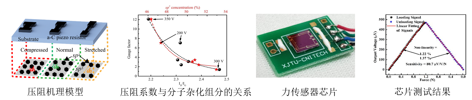 传统硅基MEMS传感器制造工艺成熟,但压阻系数有限,且材料性能易受极端环境影响。石墨烯、非晶碳、二硫化钼等新型半导体功能薄膜具有优异的机械性能、化学特性和压阻性能,并能与MEMS技术兼容。围绕上述新型敏感材料,调控材料功能与优化敏感结构,揭示复杂键态材料体系下的压阻机理,开展新一代MEMS传感器的研究并应用,为满足航空航天、辐射、高温、海洋等严苛服役环境的传感测试技术奠定重要基础。