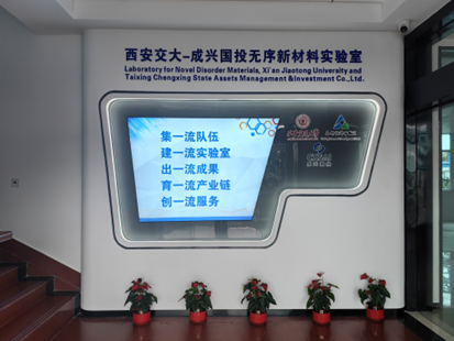 西安交大—成兴国投无序新材料实验室是由西安交通大学、江苏省泰兴经济开发区、泰兴市成兴国有资产经营投资有限公司共建的高能级创新平台,以园区化工企业污水预处理的重大需求为导向,集成果转化、产业孵化于一体。实验室区域占地面积近600平方米,分为原材料制备区域、小试中试区域、污水处理设备制造区域、成果展台区域、教授办公室、学生教研室、会议室、休闲室等 。实验室现配有全方位行星式高能球磨机、真空手套箱、高锰酸盐指数检测仪、傅里叶变换红外光谱仪、紫外可见光近红外分光光度计等设备。