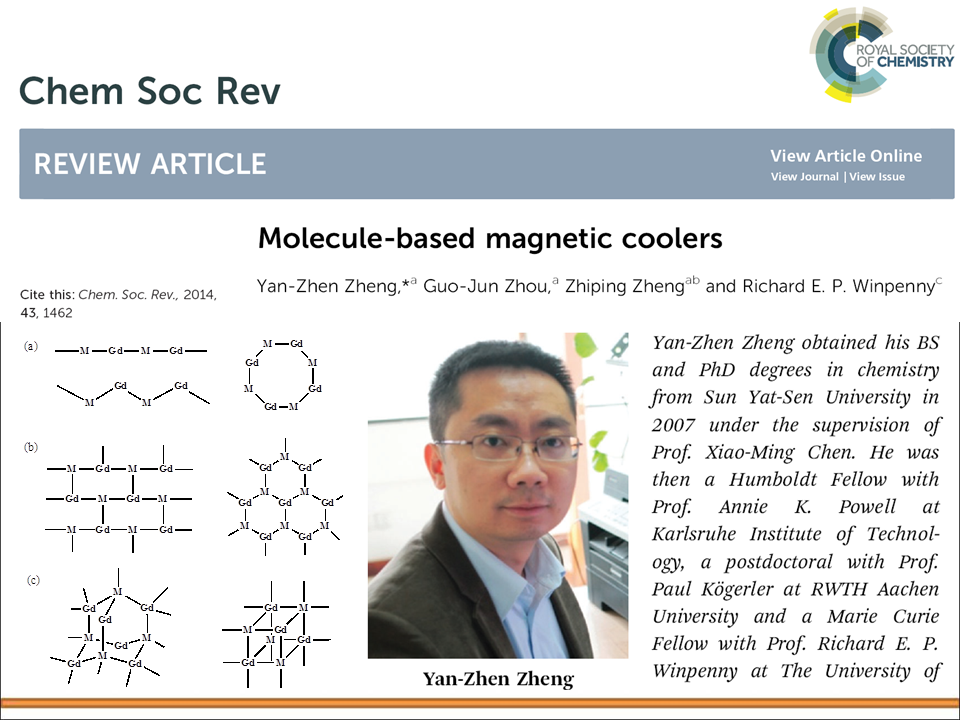 Y.-Z. Zheng,* G.-J. Zhou, Z. Zheng, R. E. P. Winpenny, Chem. Soc. Rev., 2014, 43, 1462-1475. link