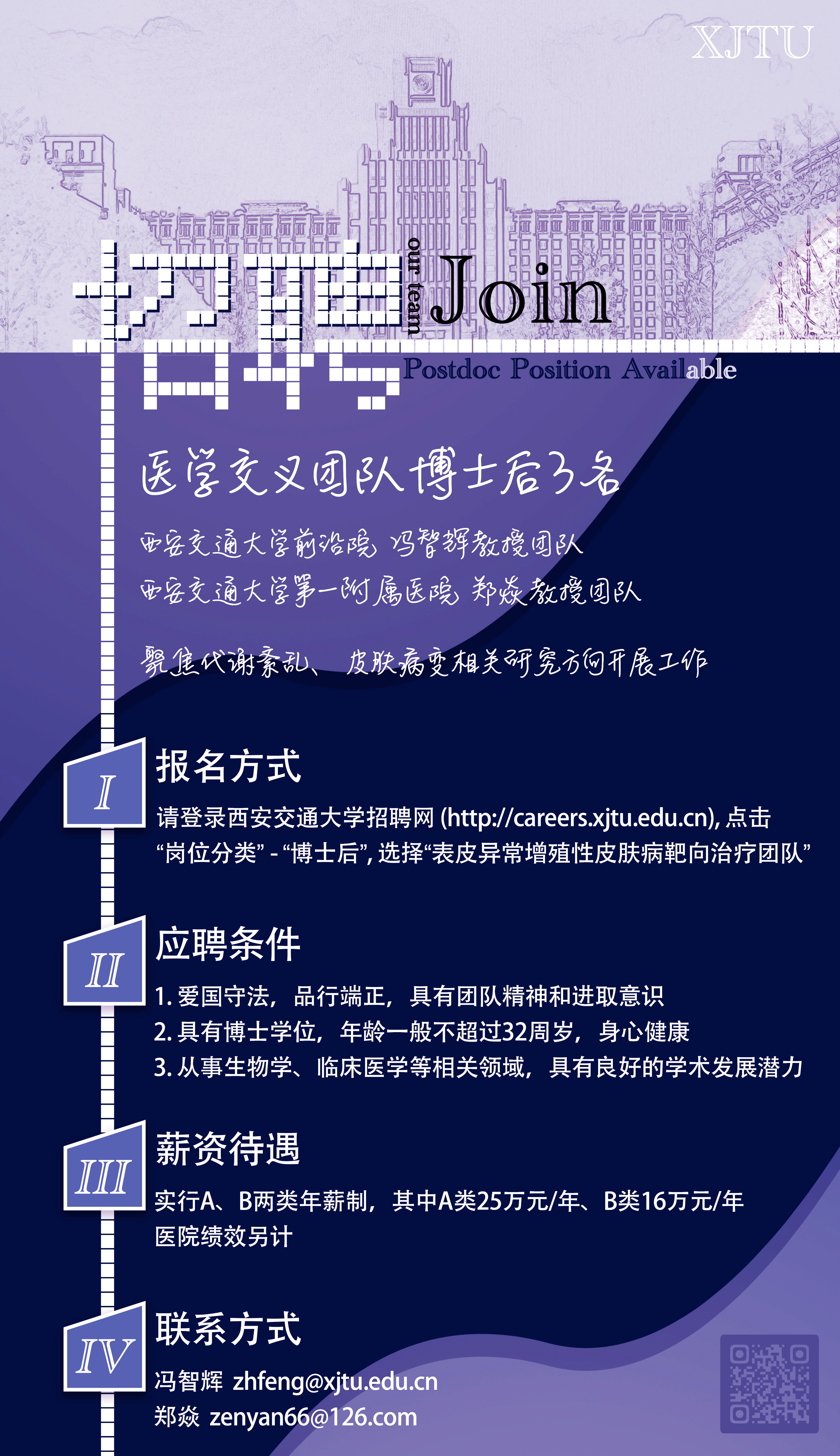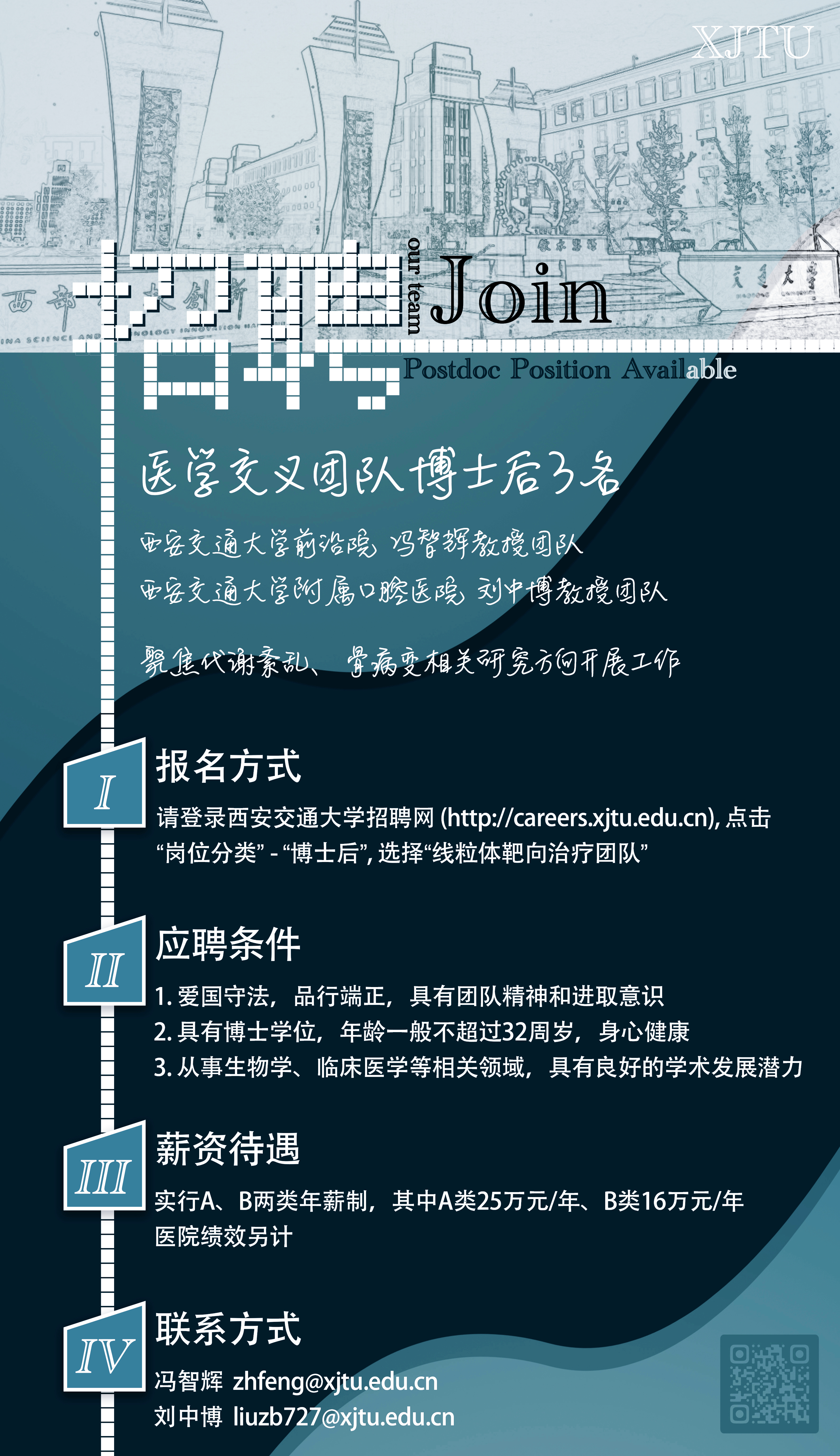 诚邀生命医学不同领域背景的科研爱好者加入,申请人可选择西安交通大学(副教授、助理教授、博士后、研究助理)或者康复大学(助理教授、博士后、助理研究员、研究助理)申报。
