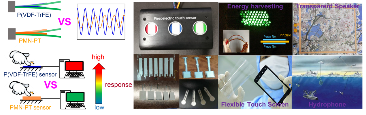 设计合成具有压电响应的新型聚合物材料,可用于制备智能穿戴、水生探测、换能驱动等领域的柔性传感器件。
