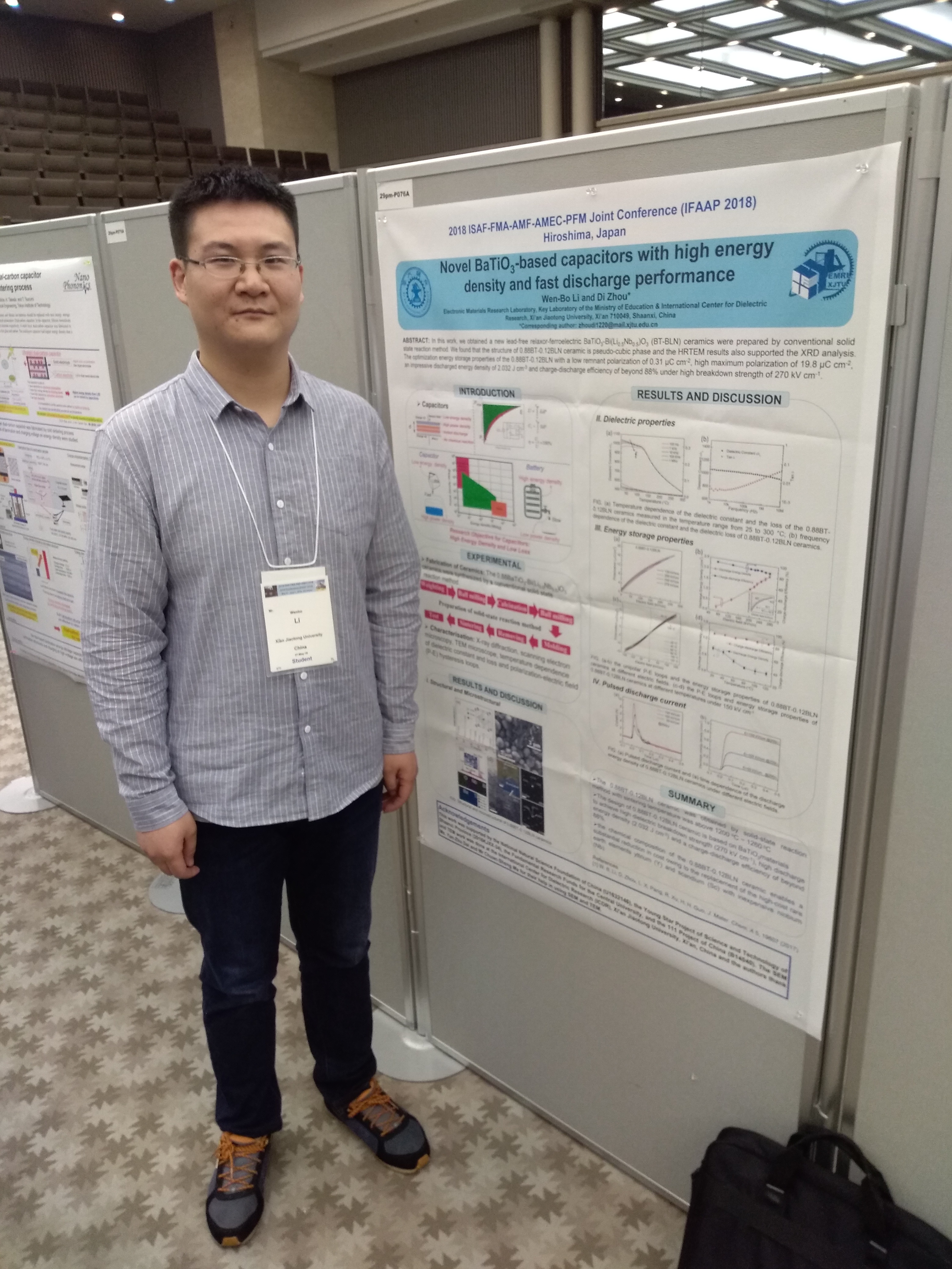 李文博,2015年-2018年,BaTiO3基储能陶瓷材料。李文博同学在读期间曾获得“姚熹铁电奖学金”和研究生国家奖学金,在JMCA、ACS Applied Energy Materials、美陶等杂志发表多篇论文;获得西安交通大学优秀博士毕业论文奖励;毕业后曾就职于榆林学院,目前入选西安交大青秀计划。Email:954404071@qq.com, QQ号:954404071。