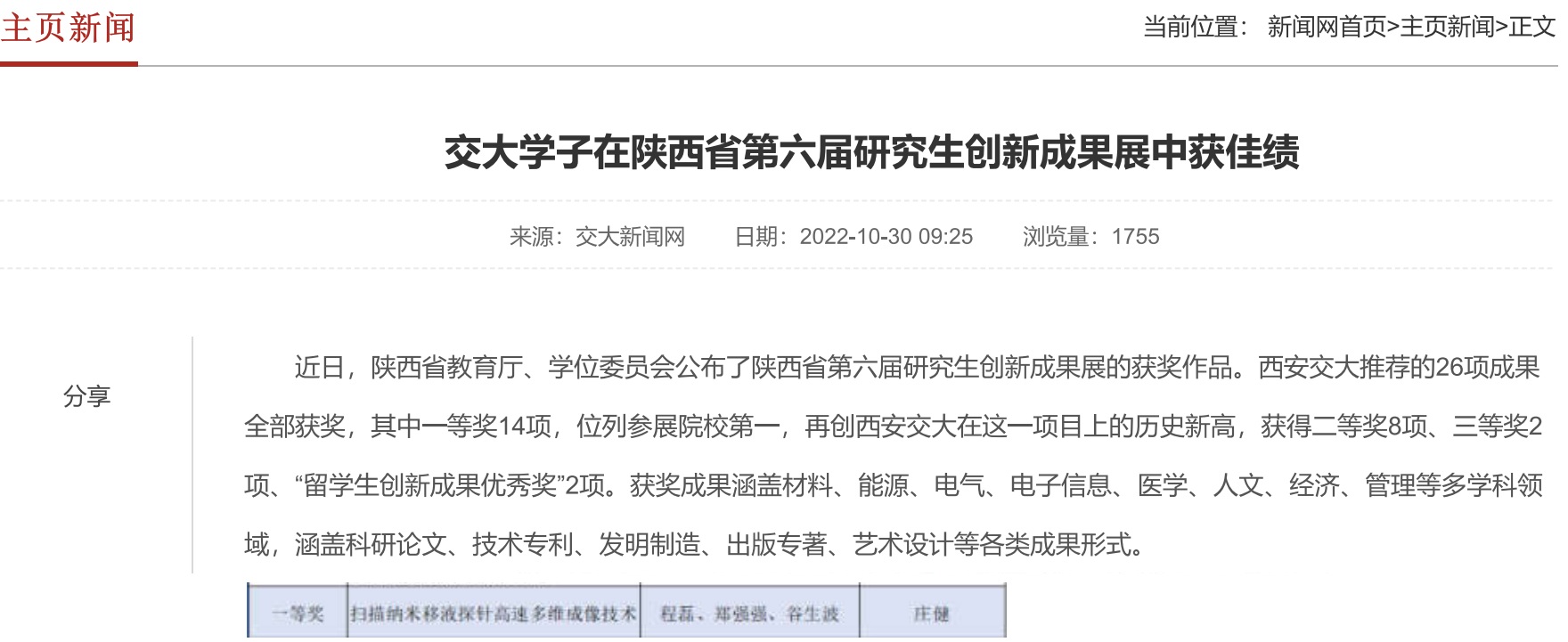 程磊、郑强强、谷生波荣获陕西省研究生创新成果工科组一等奖