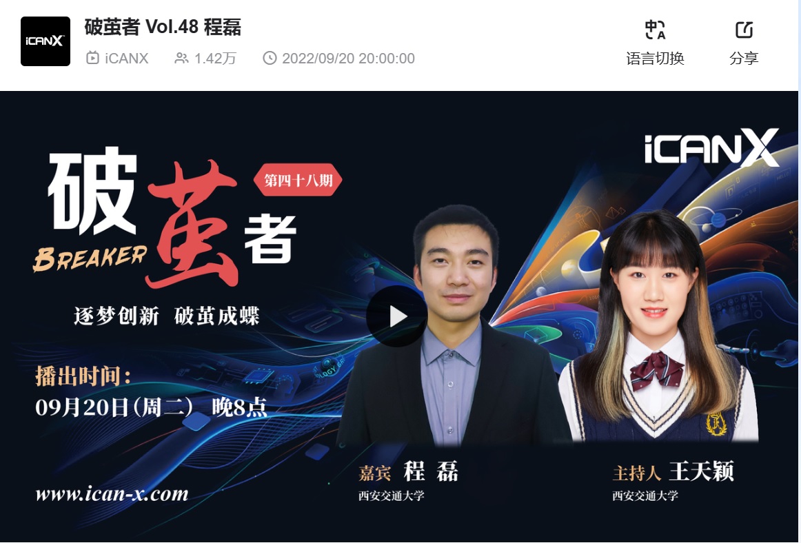 程磊博士在ICANX分享科研的追梦之路,王天颖博士主持。