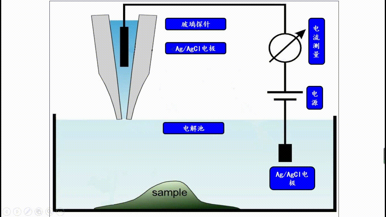 扫描电化学池显微技术 (SECCM):SECCM的样本测量可以脱离液相环境,Tip尖端的微液滴与待测样本构成微电化学池,在纳米尺度测量材料的电化学活性。主要应用在:电池材料性能、催化材料性能、材料微腐蚀等领域。