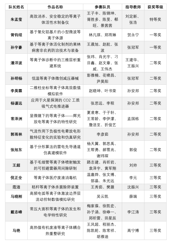 课题组成员在首届全国大学生等离子体科技创新竞赛中获得三等奖