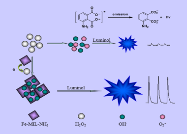 利用MOFs、COFs的荧光性质和催化性质与化学发光结合,研究基于该材料的化学发光共振能量转移,或作为增